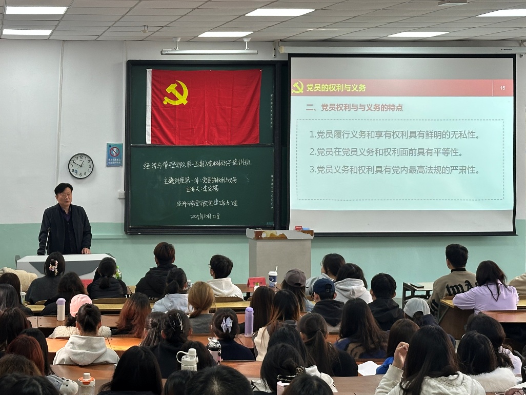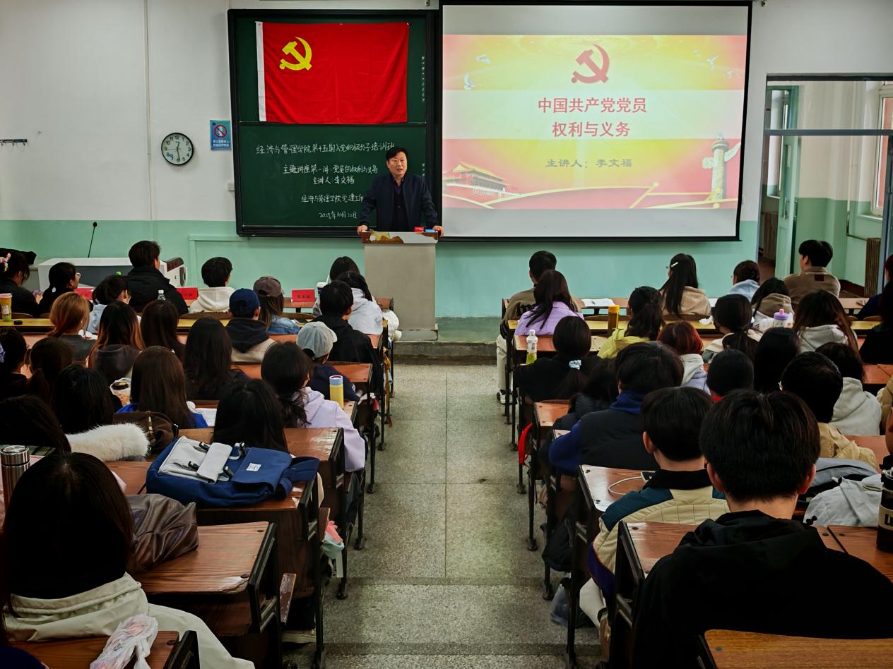 在随后进行的专题讲座第一讲中,经济与管理学院党委书记李文福以《党员的权利与义务》为主题,向入党积极分子讲解了党员权利与义务的核心内涵。