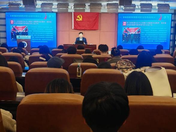 以学习贯彻习近平新时代中国特色社会主义思想及党的二十大、二十届二中和三中全会精神为主线,深入学习习近平总书记视察天津重要讲话精神,落实学校“先锋计划”各项任务。学校第四次党代会闭幕后,组织基层党组织书记第一时间面向师生开展宣讲。通过落实党委理论学习中心组学习、专题读书班、党支部“三会一课”、集中学习、党日活动等制度,结合党课、团课,强化政治与思想引领,利用好“学习强国”、青年大学习、院网站双创平台等线上学习平台,提升学习效果。
